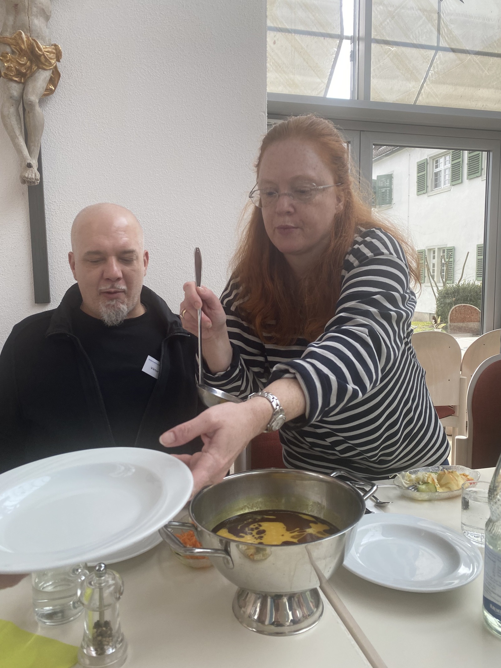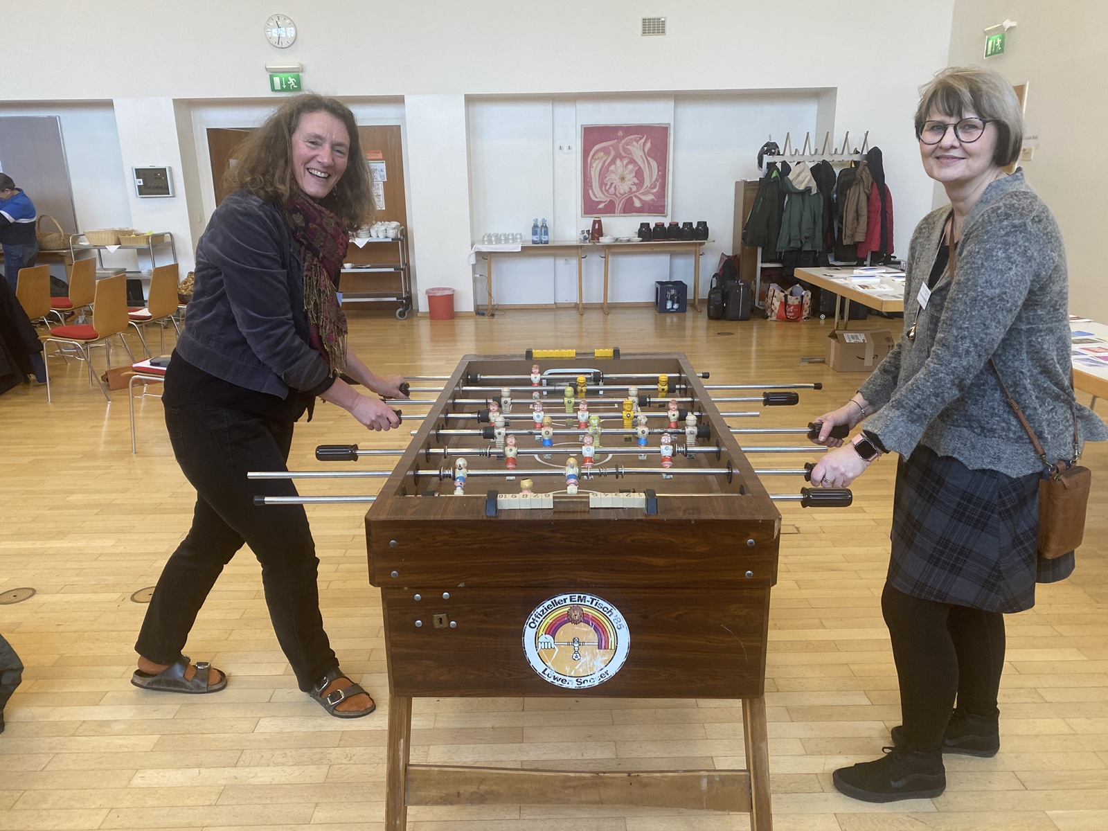 Statt vortragslastig zu sein, machten Formate wie Barcamps das Event zu einer Mitmachveranstaltung. Es wurden an kleinen Marktständen eigene Produkte von Genesungsbegleitenden präsentiert (Bücher, Infos, Gemälde, Fotos etc.) und abends gab es kulturelle Beiträge, die von Meditation über gemeinsames Tanzen bis zu Line-Dance-Übungen reichten. Wir wurden von Schloß Hersberg hervorragend kulinarisch versorgt und konnten den besonderen Veranstaltungsort und die schöne Aussicht auf die Schweizer Berge über dem Bodensee genießen. Es gab Einstimmigkeit unter den Anwesenden, dass diese Art Zusammenkunft und die länderübergreifende Zusammenarbeit fortgesetzt werden soll.